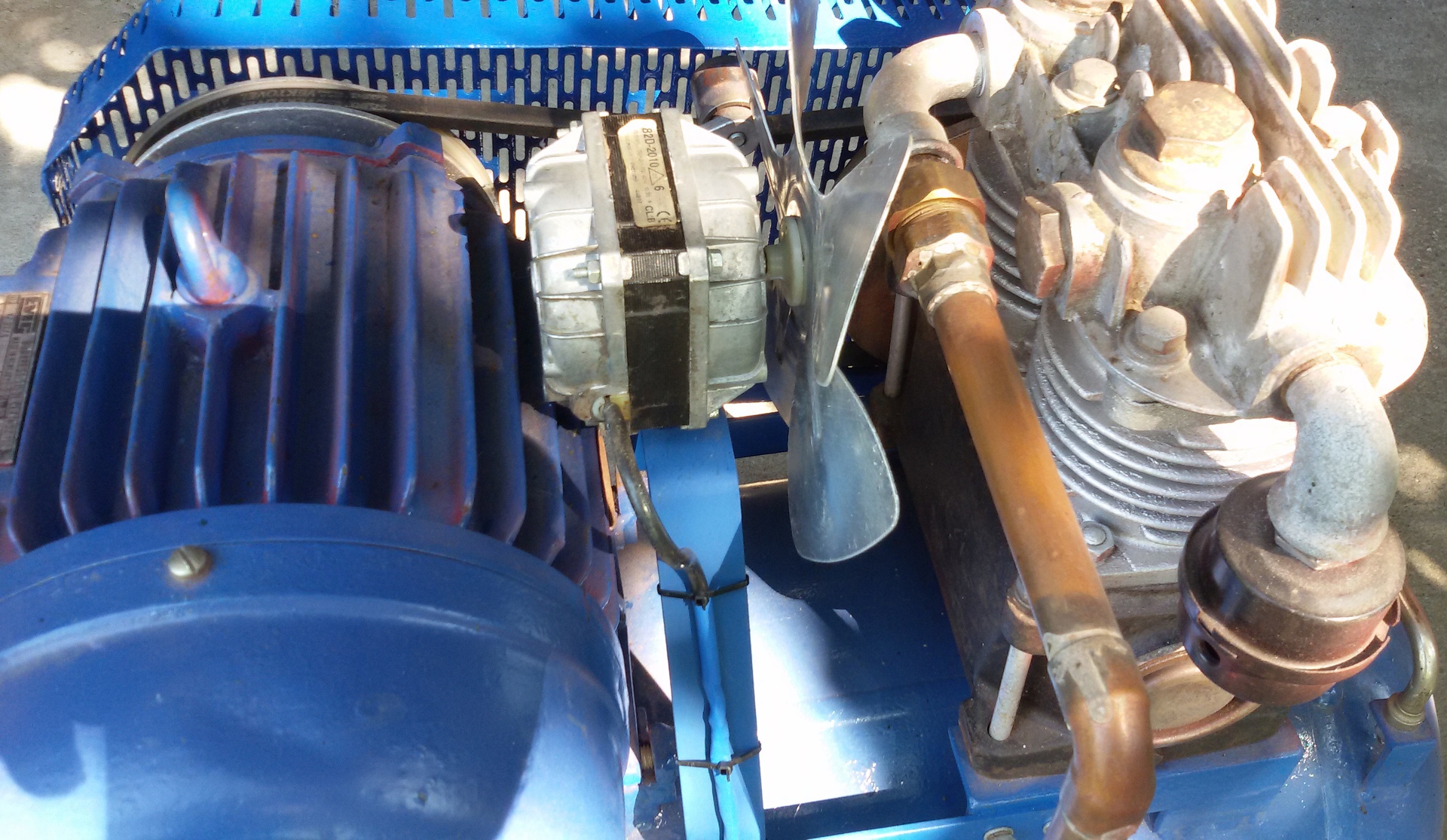 Na mindegy is inkább rakok fel képet a kompresszorom utólagosan készült ékszíj burkolatáról és ventilátoros hűtéséről.