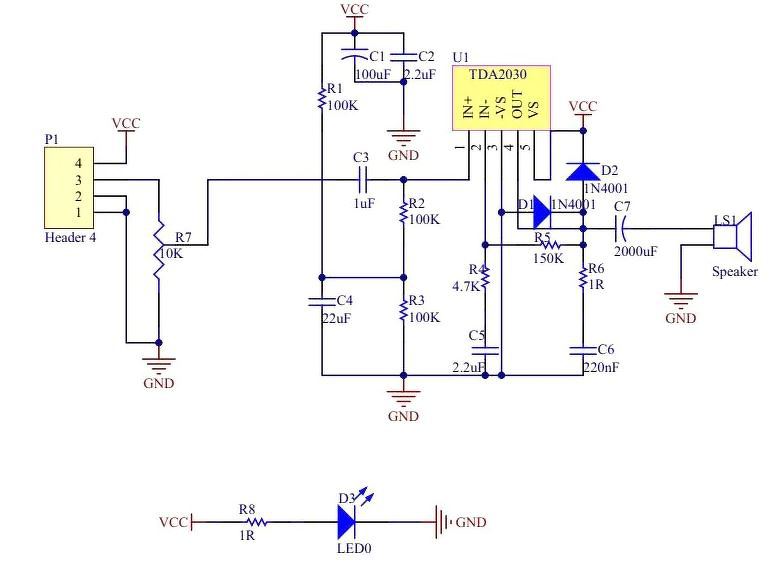 Bár a kapcsolás kissé zsúfoltnak tűnik, ez azért van, hogy ne csak LM1875-el, hanem TDA2030A-val is megépíthető legyen a kapcsolás.