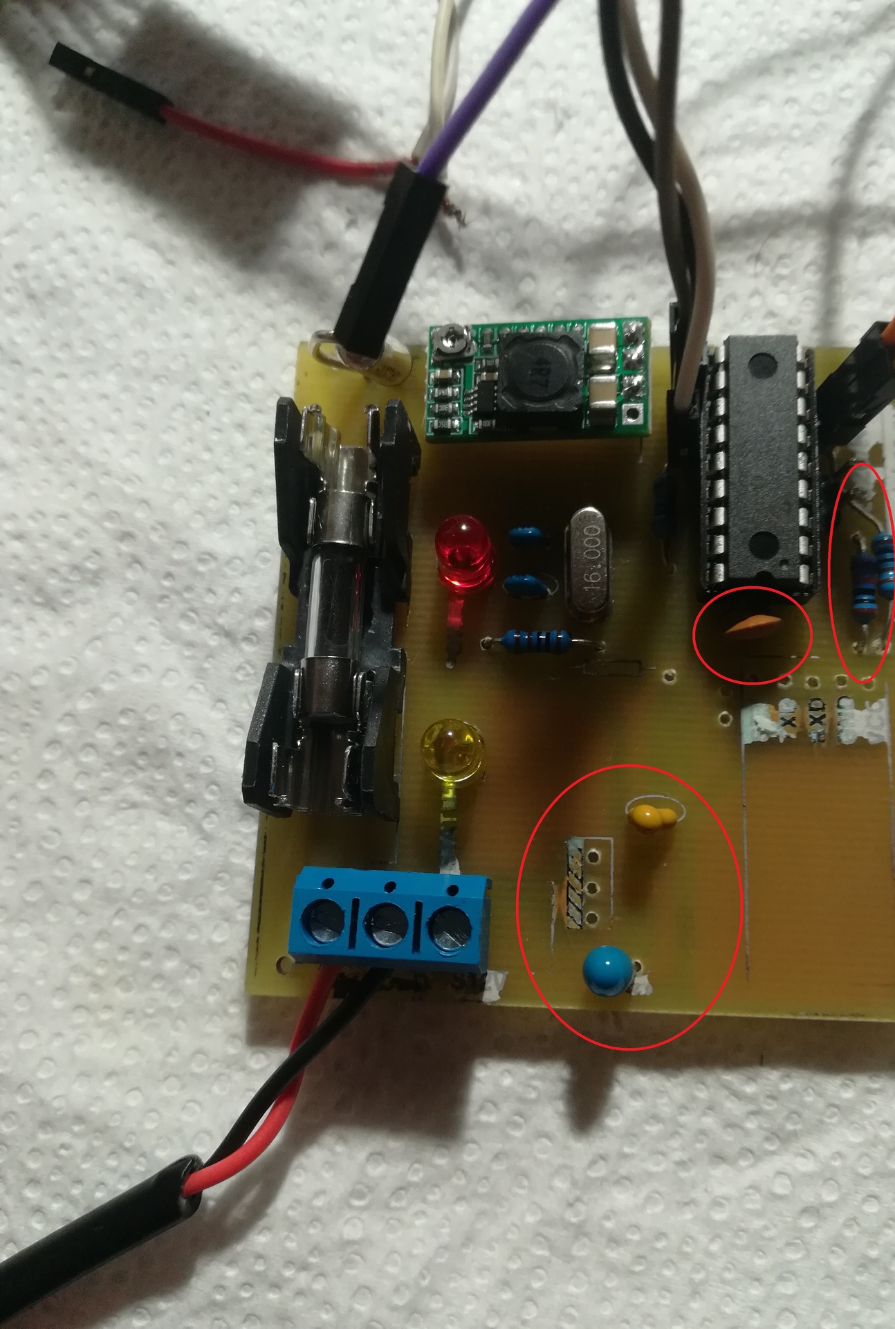 A másik panelen is ugyanígy van bekötve step down adja a tápot a picnek ott is. Nincs másik kondi és megy rendesen. Mellékeltem képet, ez volt a videón. Jobb oldalon 2 db ellenállás, egyik 10k az MCLR láb van vele felhúzva VDD-re , a másik 1k és az RX láb van felhúzva a VDD-re vele. Lent bekarikázott 2 db kondi, annak csak a GND részei találkoznak a Pic GND részeivel, mivel oda kerülne majd egy IC, de az egyenlőre nincs berakva. A hozzászólás módosítva: Szept 25, 2020