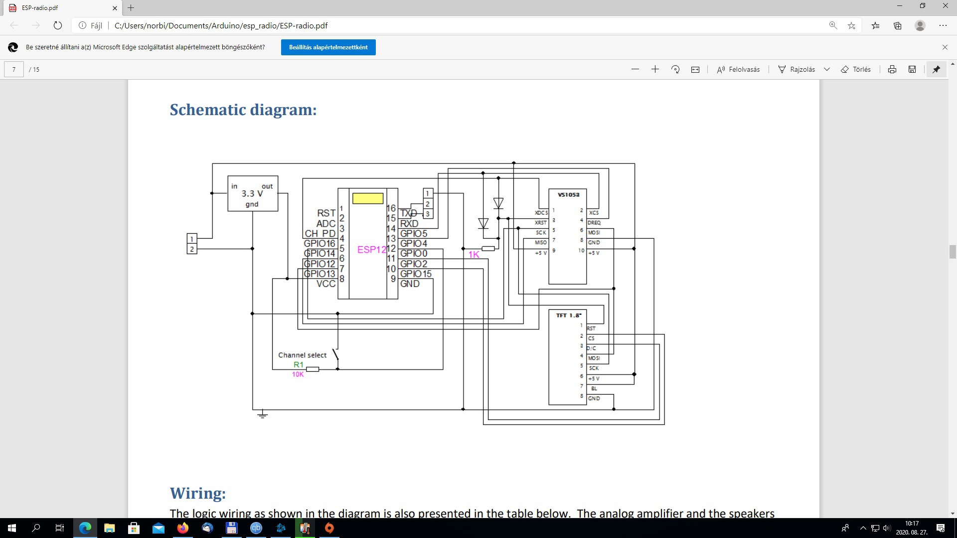 Végre nekem is összeállt ugyanez a webrádió. Kijelző nélkül, kisebb döccenőkön átjutva, weblapon át egészen jól használhatónak tűnik. A napokban érkezett, így rákötöttem az LCD-t is. Sajnos nem tökéletes a kijelzés. A kijelző modul egy ilyen: 1.8 inch 128X160 SPI ST7735S TFT LCD full color display (blue PCB). Edzelf utal a leírásban, hogyan kell ezt konfigolni, de akkor is nekem kb. 2-2 pixel lemarad fent és bal oldalon. Nem szeretném átírni mindenhol a kijelzett értékek pozícióját. Tudtok valami globális (offset vagy pos) eltolást, konfigot erre az LCD modulra? Olyan érzésem is van, hogy nem mindent jelez ki, amit tudnia kellene. Induláskor szerintem ok, de amint betölti az aktuális állomást, csak az **Internet radio** a felső sorban, alatta az aktuális zeneszám címe, előadója, majd jóval lejjebb az állomás neve látható.