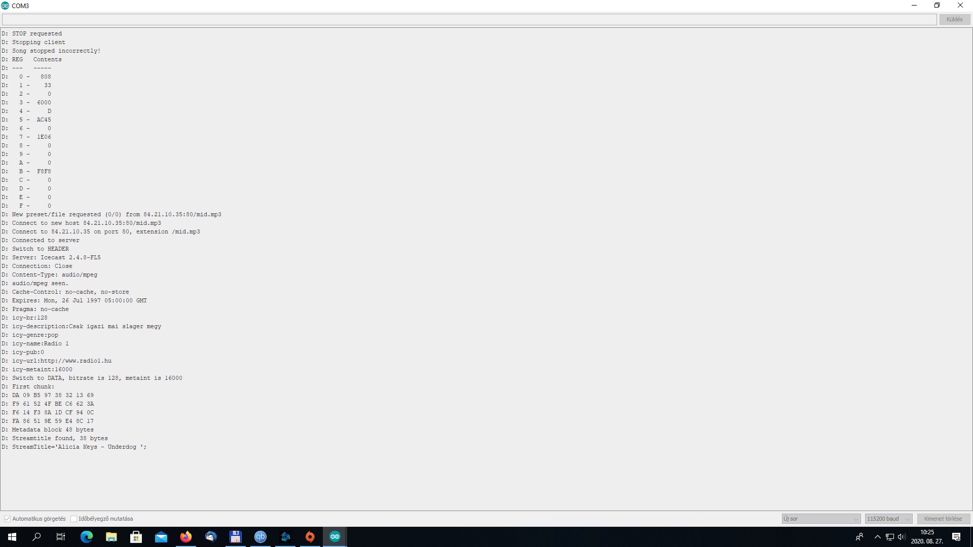Első betöltéskor lassú, amíg nem töltöm fel a radio.ini-t. Szintén a web a gyenge pontja, ugyan az mint KAradiónál. A leg egyszerűbb felépítést használom. Kijelző nélkül 1db nyomógombal. Ami az ini-ben előre beállított csatornát lépteti. Az általad említett nyomógombok a kijelző mellé kellenek navigáláshoz. Csatorna váltás úgy 5 másodperc. Arduino alatt soros monitorral szépen látni hogy épül fel a kapcsolat, inden infót kiír a csatornáról.