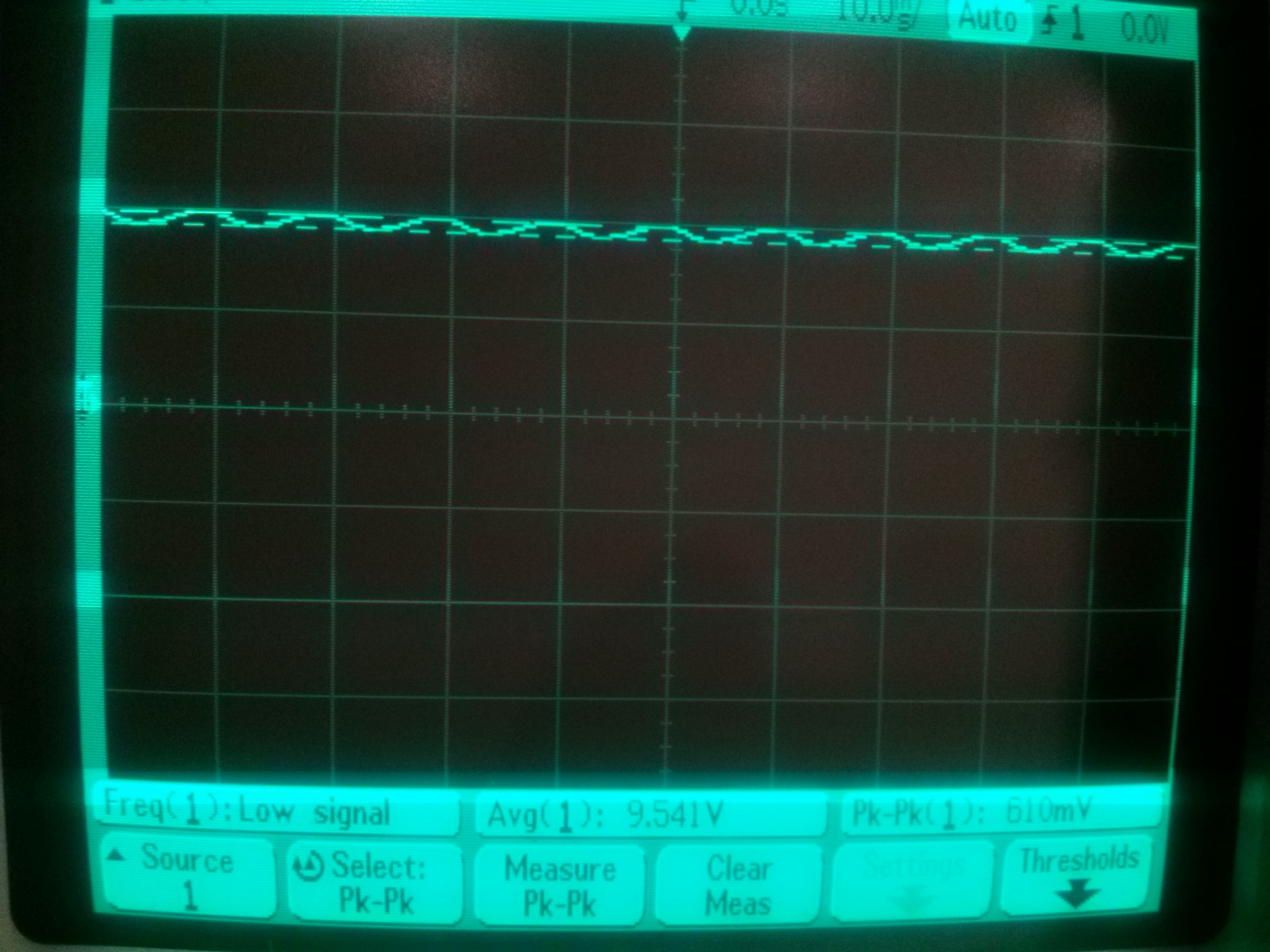 A source ellenállás 0.1R, tehát a tápáram 0.5A a brumm feszültség pedig 44 mVpp.