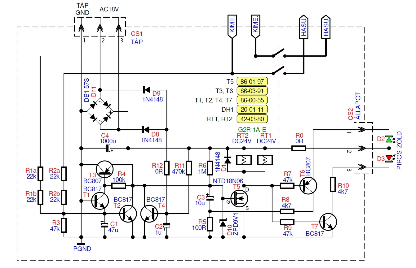 Elsőként a táppal kell foglalkozzunk. Az iménti ábrán C1-gyel jelölt kondenzátoron nincs ott a 18 V körüli feszültség, amit már korábban észleltél?