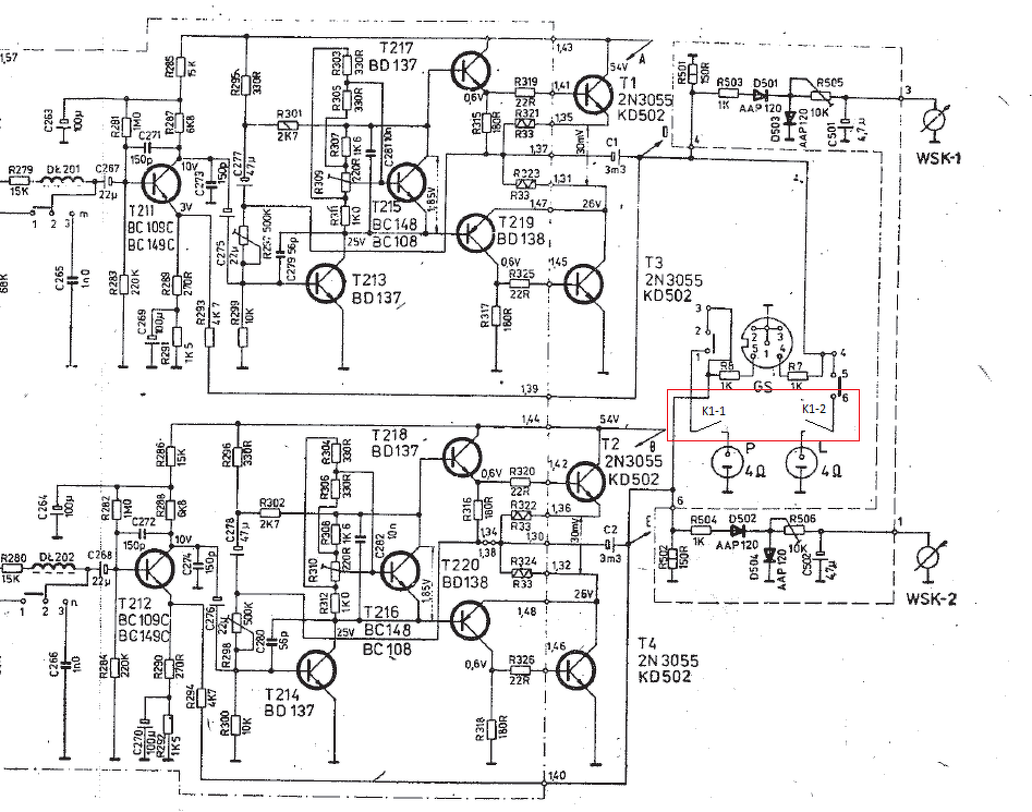Rég óta olvasom már a hobbielektronika fórumokat, de csak most jutottam oda, hogy regisztráljak. Megépítettem a Szamóca-féle koppanásgátló és hangsugározó védelmet de valami nem kerek a történetemben. A dolgok remekül működnek ha nincs a végfokról bekötve semmi. Késleltet, majd kikapcsoláskor AC hiányában rögtön old is. A DC védelem rész is működik DE: Az alany egy Unitra WSH-402 (Kleopátra 2) melynek tápfeszültsége 54V és a kimeneten kimenőkondenzátorok találhatóak. Nos én ezt úgy kötöttem be legjobb tudásom szerint (kép mellékelve), hogy a bal oldalon például C1 és 6os pont után a relé egyik érintkező közös pontjára, majd onnan a segédérintkező másik pontja a kimenetre (tehát hangsugározók felé). Jobb oldal C2 - 6 ponttól a relé közös pontjára majd a segédérintkező a hangsugározók felé. Képen mellékelem jelölve, hogy hogyan történik a bekötés. A táppal nincs gond, hisz ha nem kötök be az erősítő felől semmit akkor késleltet, húz, kikapcsol. Azt szeretném Önöktől/Tőletek kérdezni, hogy mi az amit elronthattam? Lehetséges, hogy a C1 - C2-es kondenzátoron egyenfeszültség jelenik meg, úgy, hogy nem zárlatos a végtranzisztor? (Csatoltam az erősítő szervizdokumentumát, abban a kapcsolási rajza is benne van, valamint a bekötésemről egy rajzot, Szamócának a védelméről egy rajzot, és ezen felül a panelomnak a kapcsolási rajzát, valamint a paneltevét is!) Hálásan köszönöm előre is a válaszokat, és minden nemű segítséget! Szép napot kívánok mindenkinek!