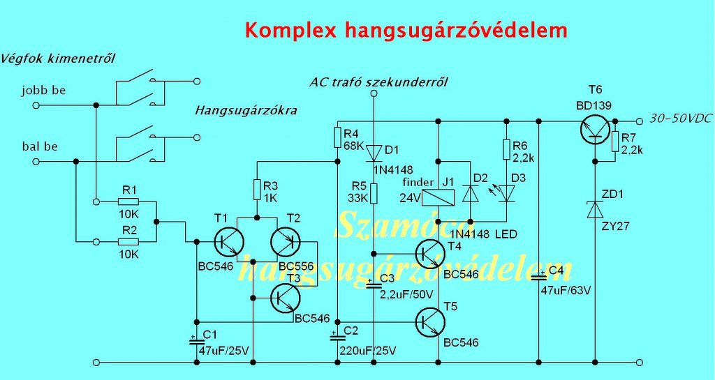 Sziasztok! Megépítettem az alábbi hangszóróvédő áramkört! az a probléma hogy egyáltalán nem húznak meg a relék. Sőt a tekercseken 0 v ot mérek.