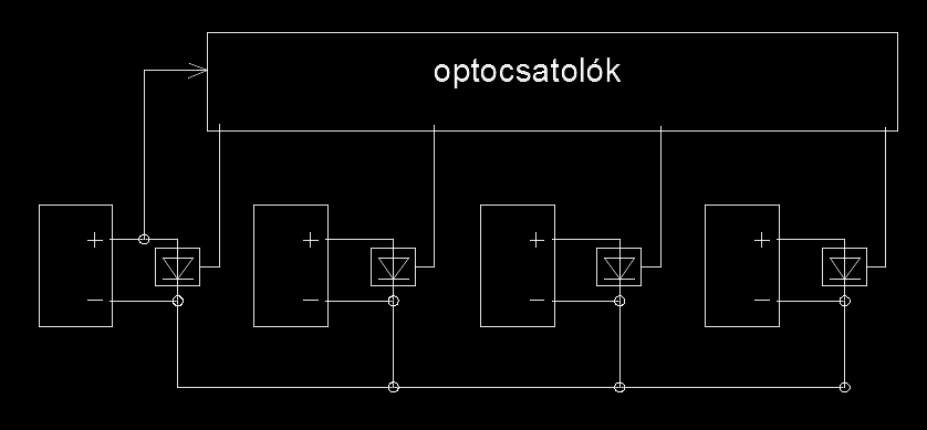 A közöset úgy értem a 4 tápegységből az egyikről veszem a tápot vezérlőjelnek és mindegyik azt kapja. Kapartam egy vázlatot.