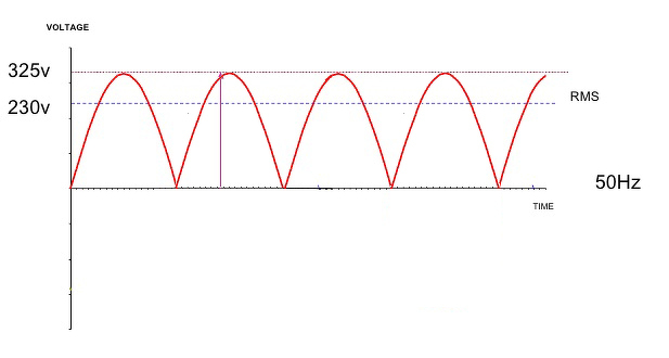 240 V~ egyutas egyenirányítás utáni effektív értéke nem 108 V hanem 169.2 V