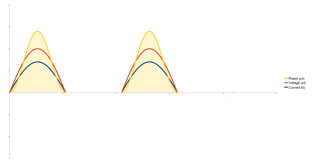 A második rajzon (Teljesitmeny.jpg) nincs egyenirányítás. Piros: feszültség, kék: áram, sárga: teljesítmény. Egyutas egyenirányításhoz lásd a képet ebben a hozzászólásban. Nekem úgy tűnik, a teljesítmény éppen a fele az előzőhöz képest.