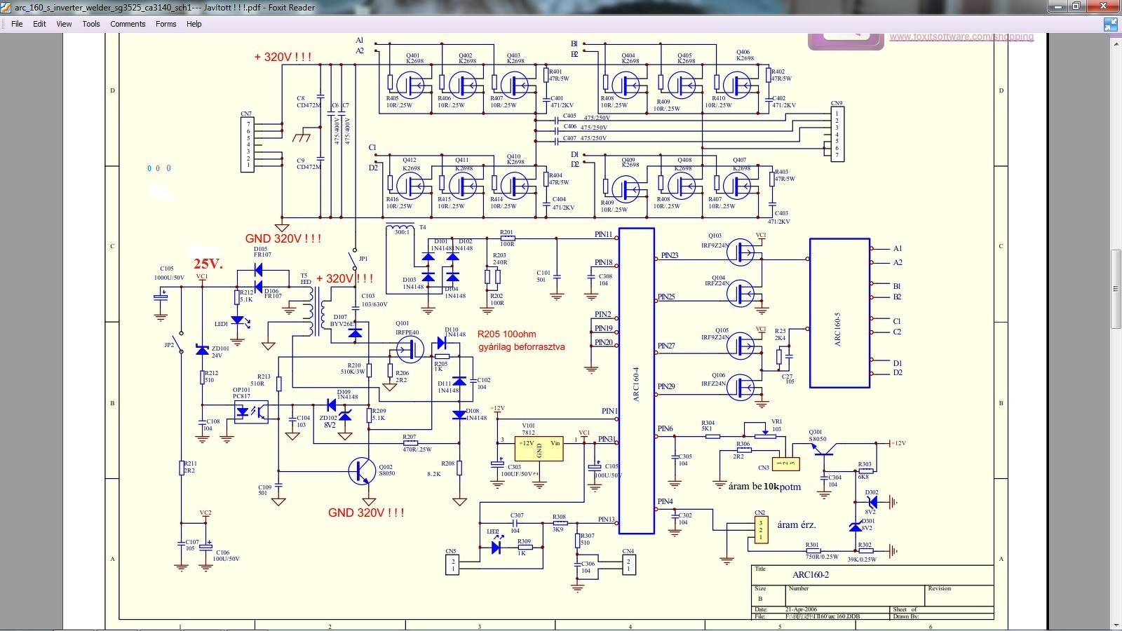 Javítok egy ARC160-as gépet . K2698, IRFPE40 , S8050 (helyette S8551) és R206 2.2 ohm csere után bekapcsolva működik (korlátozó égő a JP1 helyén próbára ) Működik de kikapcsoláskor a videón jól látható "nagy" áramfelvételt mutat a Fet-re .Normális ez, nem fogja kiütni a Fet-et ha kihagyom az égőt? Köszönöm. Bővebben: Link