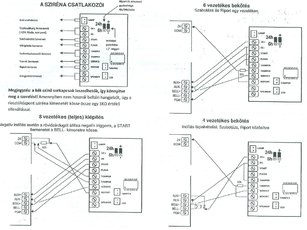 Csatolom a kapcsolást (nem vitték túlzásba a kébelrendezést ) vszínű neked többet elárul. És igen, a külső szirénának is van külön akkumulátora.