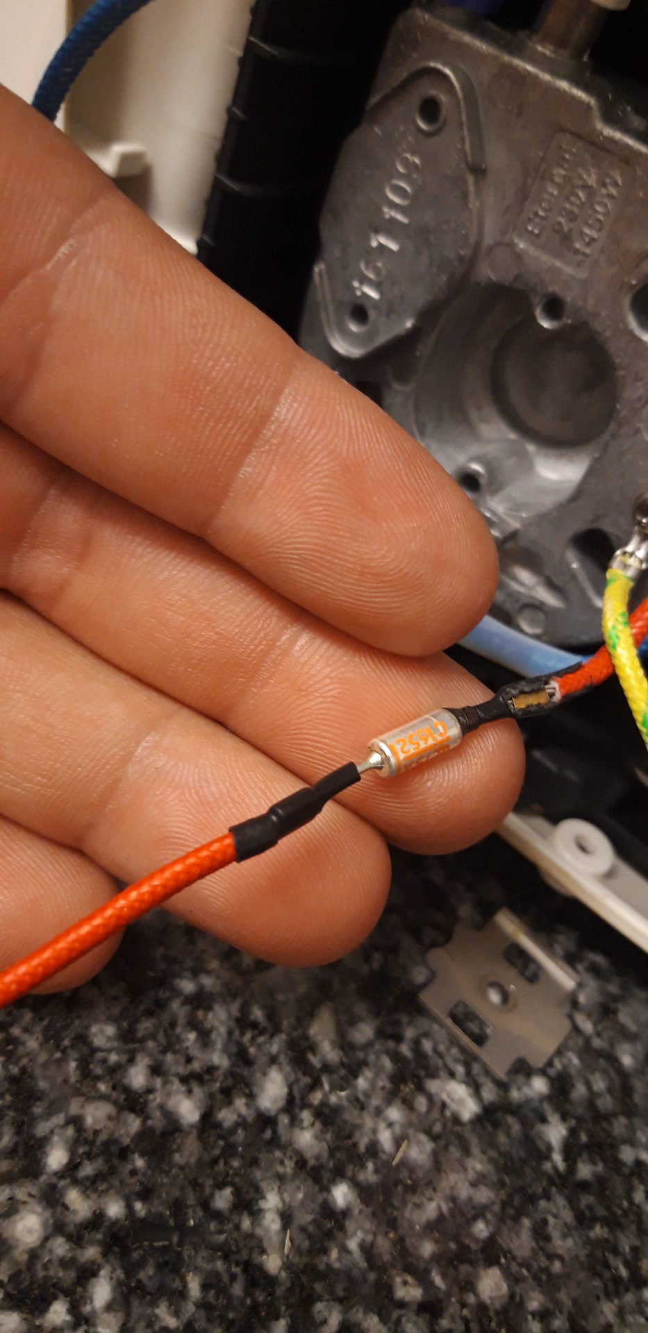 Köszönöm. Úgy nézem ilyesmi van benne. Ezek szerint meghalt a termosztát. Veszek bele egy 110°C-os termosztátot.