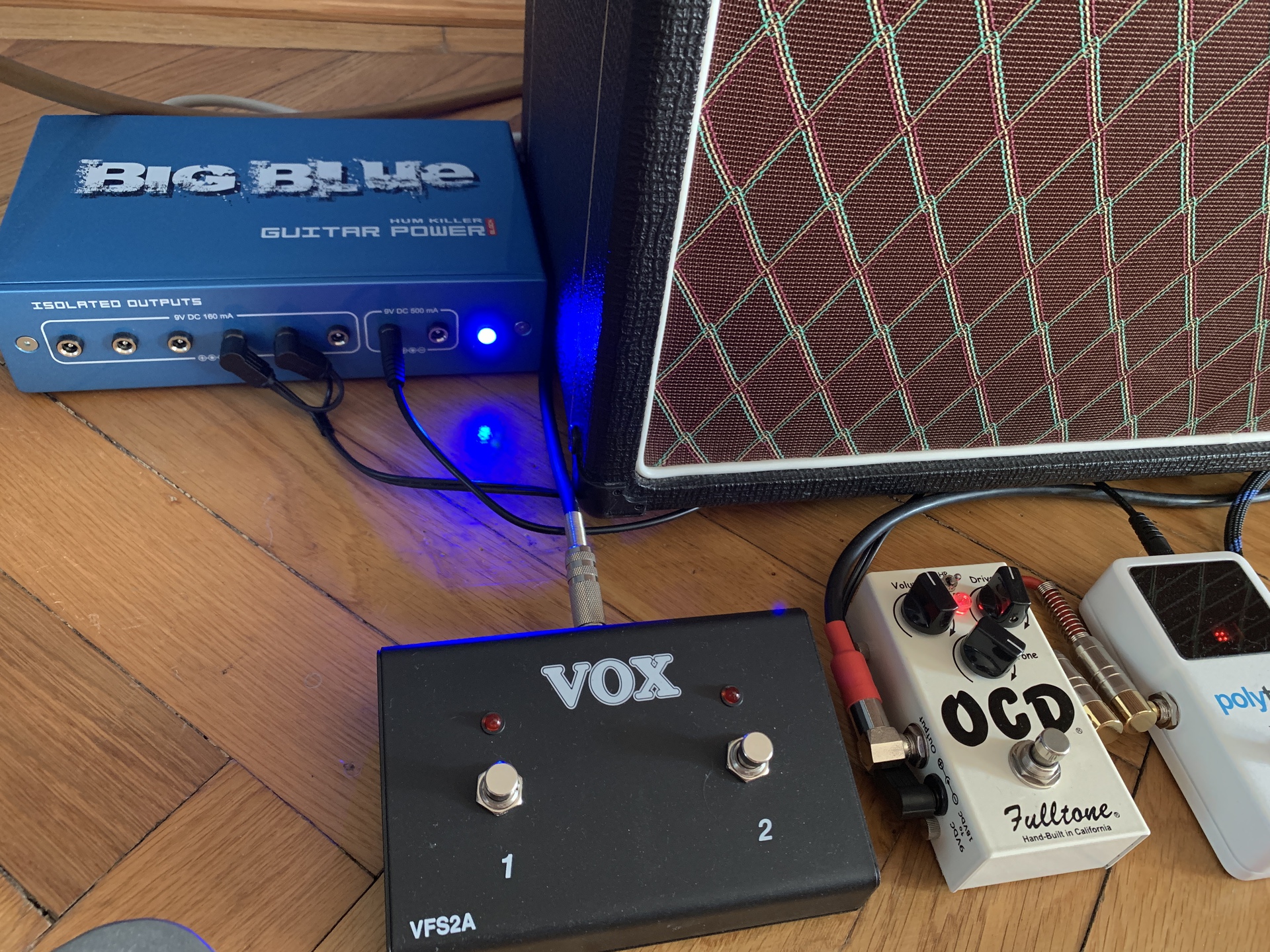 De akkor már nagyon ész nélkül kell lenni, mert elöbb bedug egy különleges eloszto adaptert ( amit még nagyon nem is látott) és abba még be kell dugnia 2 darab 9V-s tápot. Ennyi hülyeséget egy pedálba nem igen lehet benyomni még hajnali 3 orakor sem.