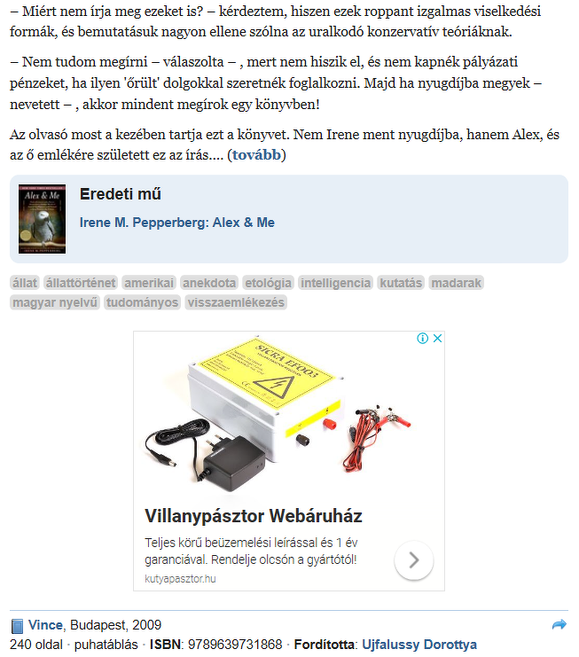 Akit érdekel ez az agyas téma, gondolatébreszőnek: Alex meg én. Megdöbbentő történet a kutya és macska témához kapcsolva