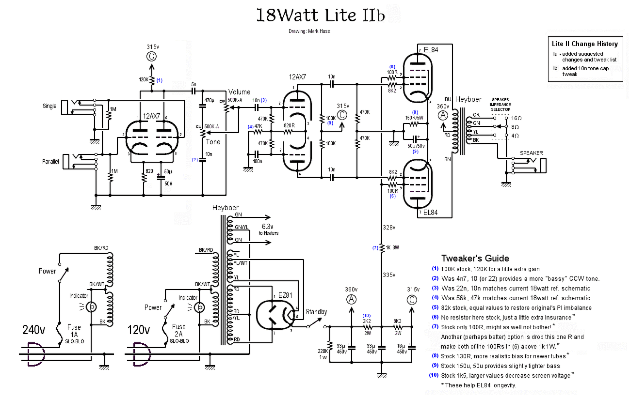 Lehet hogy gerjed. A nagyfrekis oszcilláció torzításban, zajban, brummban szokott megnyilvánulni. A Marshall topológiában van egy katódkövető fokozat a tone stack előtt. Ez szokott kapacitív a fűtésvezetéken keresztül a bemeneti csővel beszélgetni. Az első cső fűtését érdemes egy ferritgyűrűn keresztül hozni a másodiktól, vagy ha megoldható külön fűtőtekercsről járatni. Esetleg egyenfeszről.
