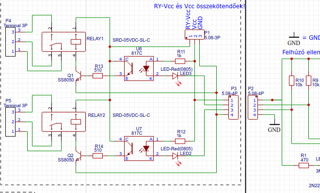 Led világít, ha a VCC 5V-on, és az adott bemenet GND-n van. A relé elvben húz ha az RY_VCC 5V on a GND gnd-n a VCC 5V-on és a bemenet GND-n van, és mindezt egy tápról követed el.