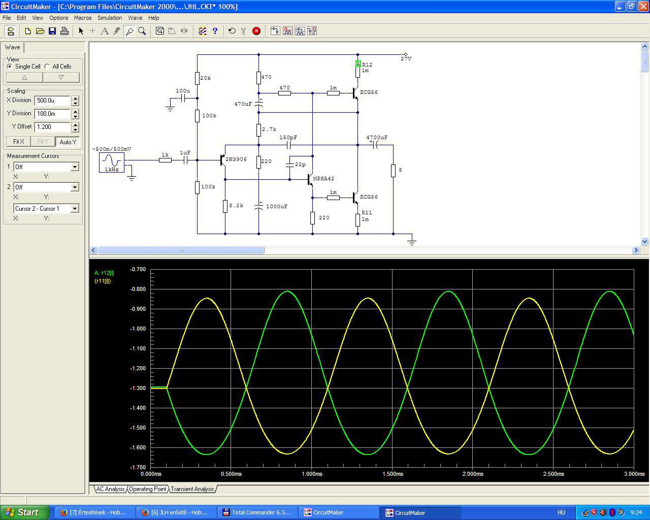 Most, hogy jobban tudom már használni a TINA-t, egész hasonló eredményeket kapok mint a CM-ben. Nekem a TINA kényelmesebb, gyorsabb, bár lehet ez csak megszokás.