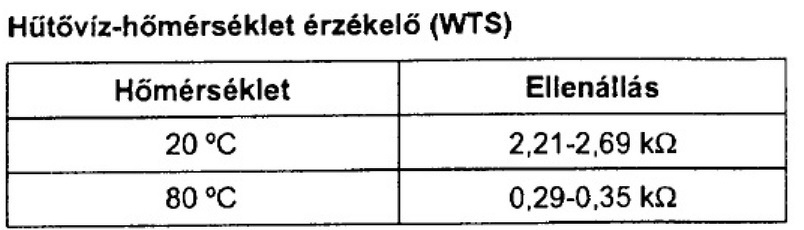 Arról nincs adat, hogy köztes hőmérsékleten milyen értékek mérhetők. Ez az NTC a zöld becsavarós volna és az oda van becsavarva ahol a termoviszos szelep tere van.
