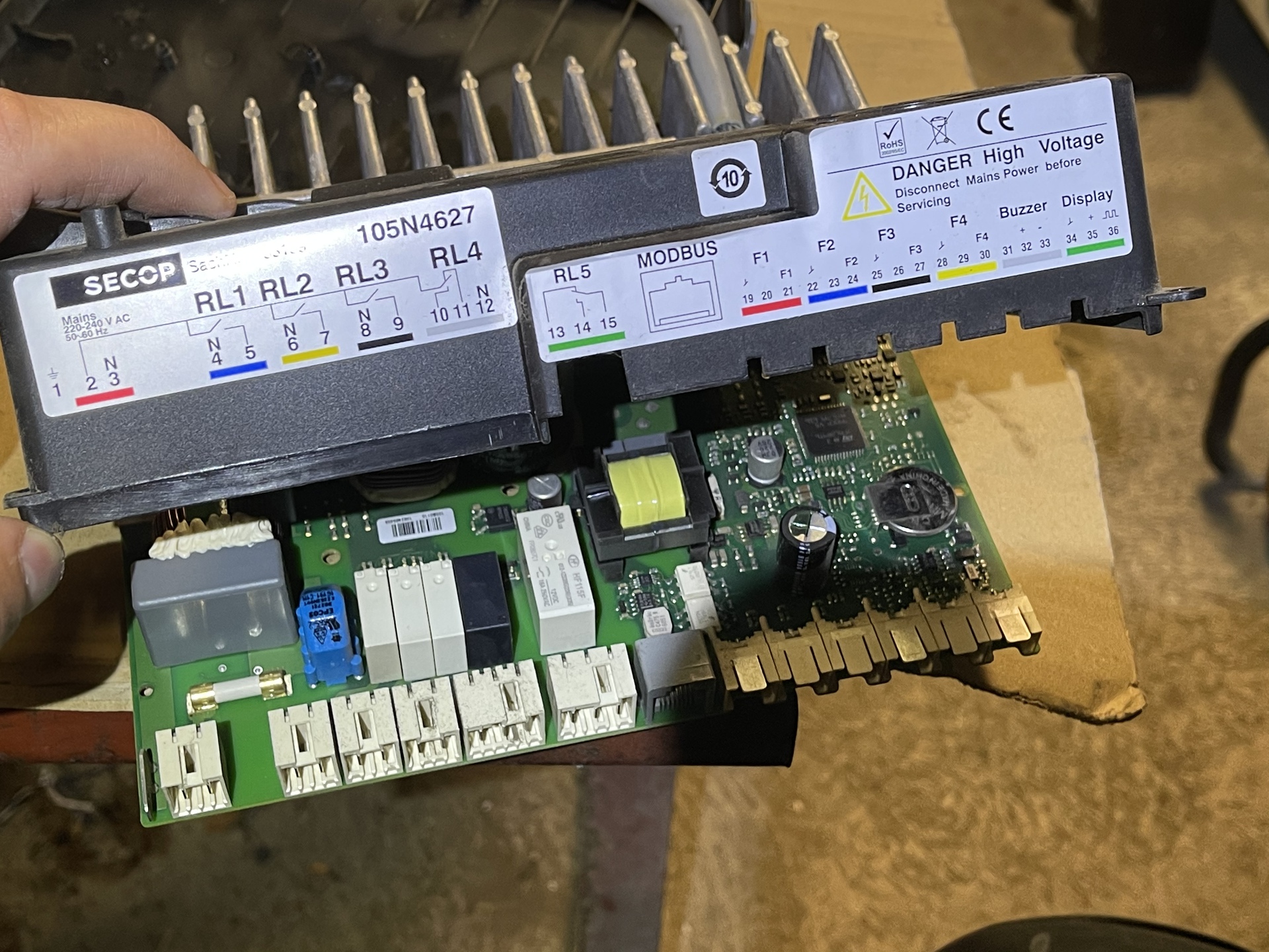 Adott a címben szereplő fagyasztóláda, ami sajnos pár hete egy áramszünet után elhalálozott! Jelenleg a következőt műveli, bedugva a ventillátor bekapcsol, majd kis idő múlván kapcsol a kompresszor is,de sajnos rövid felpörgése után leáll. Majd a hűtő kijelzőjén a kővetkező hiba üzenet jelenik meg (E70),”manual” alapján elektromos hiba... sajnos bővebben nem tér ki rá! Kiszerelve az invertert ( secop 105n4627) Ez a látvány fogad. Külsérelmi nyom nincs,esetleg tudnátok adni valami támpontot merre induljak meg hibakeresés fronton? Előre is köszönöm!