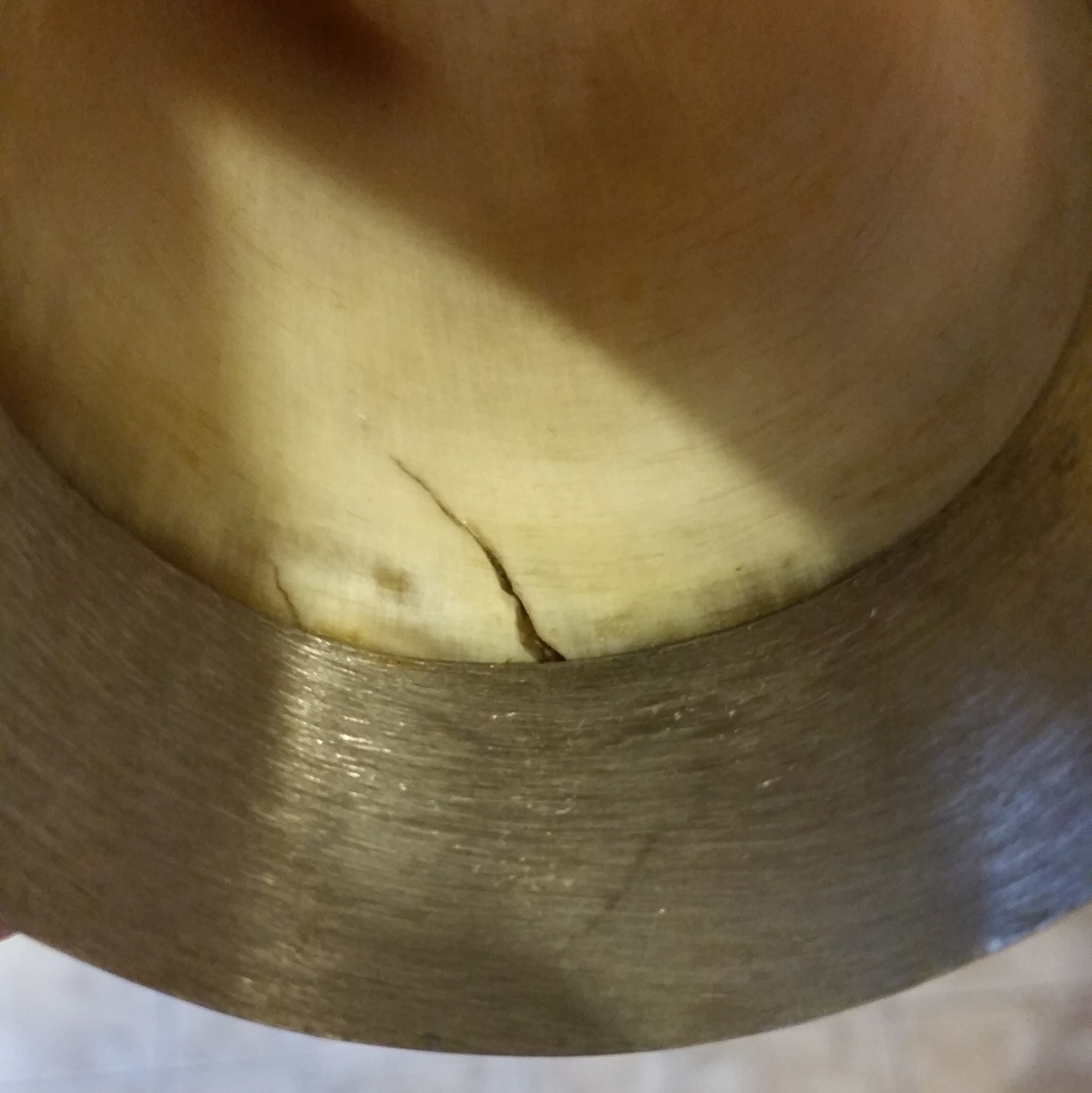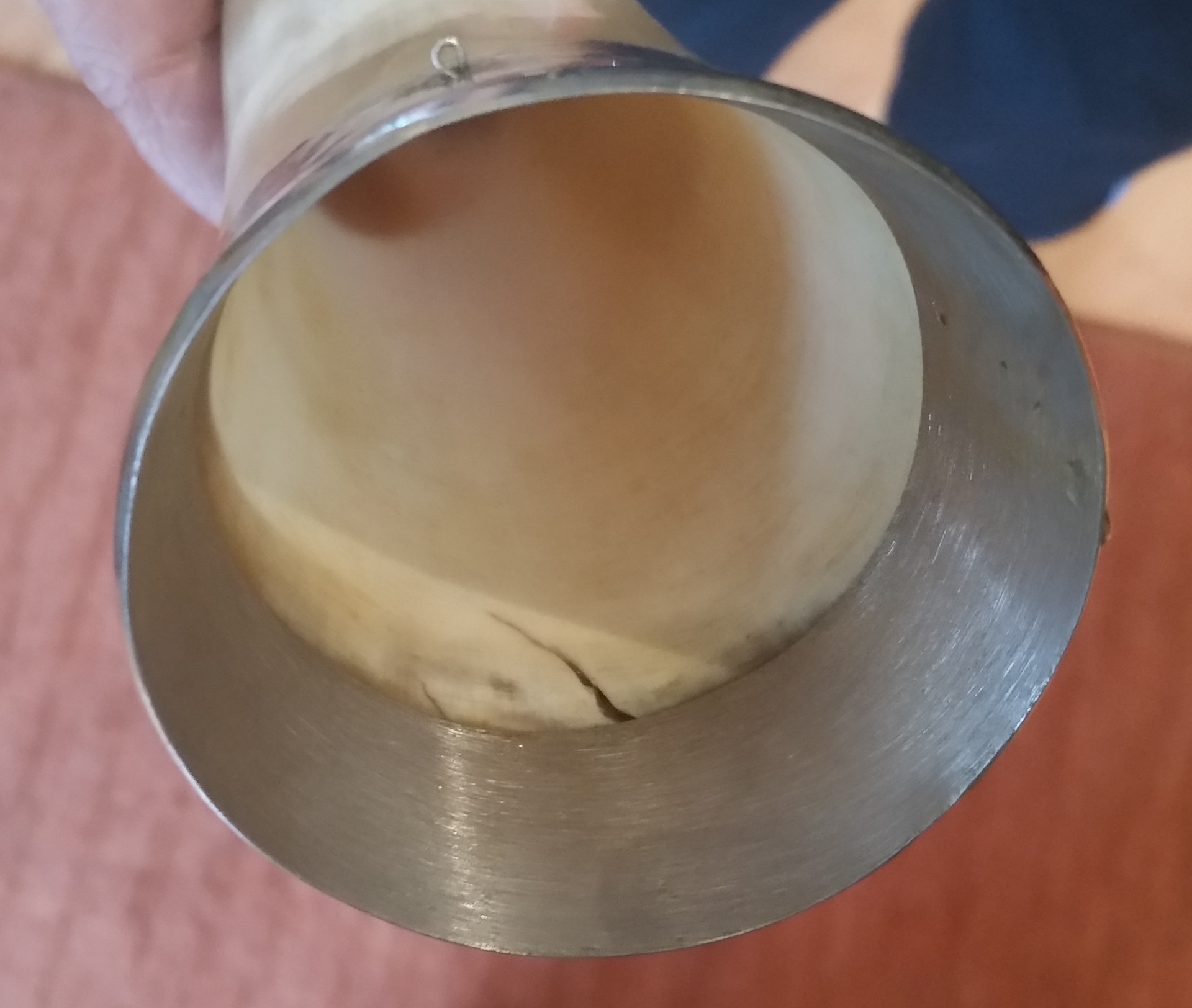 A tülök szaruból készült és alant látható, a rajta lévő repedéssel együtt.