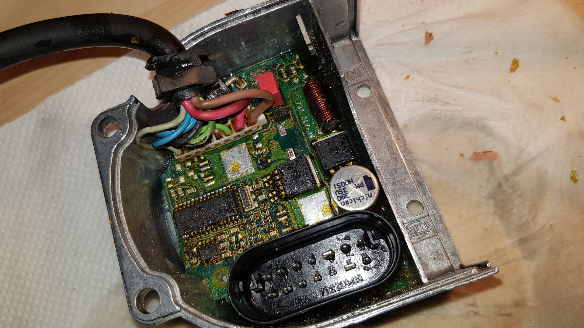 A diagot így csináltam ahogy írtad. Még a kocsiban volt és "megcsapoltam" a diag szálat. Sajnos csönd volt. Az asztalon már tettem egy izzót műterhelésnek az ac helyére gondolván azt hiányolja de nem. Akkor még be volt öntve minden., viszont szakadt volt az izzító. Most már jó az izzító és kikaparva a vezérlő, de nagyító alatt amit láttam: