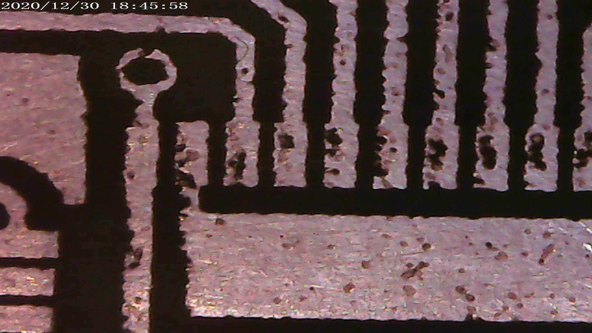 Valószínűleg a kicsit durvább polírpapír miatt, amit a festék leszedésére használtam vegyszer helyett. Vasalás előtt azért simább, és rendesen letisztítom polírozás után. Csináltam egy második marást. 35um helyett csak 18um-es a réz vastagság és nátrium-perszulfát helyett a gyorsmarót használtam hideg állapotában. Szabad szemmel sokkal jobb, használható is lesz, lakkozás és forrasztás után nem is vehető ki. Azért mindkettőről csináltam két nagyított képet. Így jobban látszik a felülete a réznek. A másodiknál sem tökéletes, de a rövidebb marási idő miatt (nem tartott 15 percig a marás) még használható állapotban maradt. Mindenesetre kiderült akkor hogy tényleg a nyomtató-toner okozza. Régóta tervezem hogy összerakok egy levilágítót. Jövőre alternatív megoldásnak esedékes lesz egyes nyákoknál átállni fotos technikára, ha tökéletest akarok. Illetve még annyi, hogy pár hónapja a CNC-s nyákmarás is megfordult a fejembe. Sok fajta megoldás létezik kisebb váz megépítésére. Voltaképp nincs is ezzel gond, adott lenne a mechanika és a elektronika is. De mindig jött más, és nem volt idő foglalkozni vele... Esetleg van itt olyasvalaki aki mart már nyákot CNC-vel? Látjátok értelmét havi 4-5 nyáknál vagy arra nagyon jó a vegyszeres marás is, és ne változtassak?