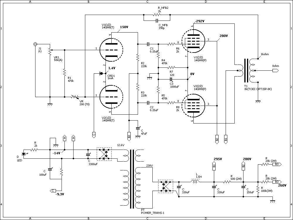 toyboy kérésére Itt a táp rajza. Ez lesz a PCL86PP tápja. Ez egy másik kapcsolás, meg itt van az audio innovation amit meg fogok csinálni. De lehet, hogy annyit fogok rajta változtatni, hogy a két trióda katódját a másik rajz alapján -9.3V ra rakom, nem egy 1K-s ellenállással a földre.