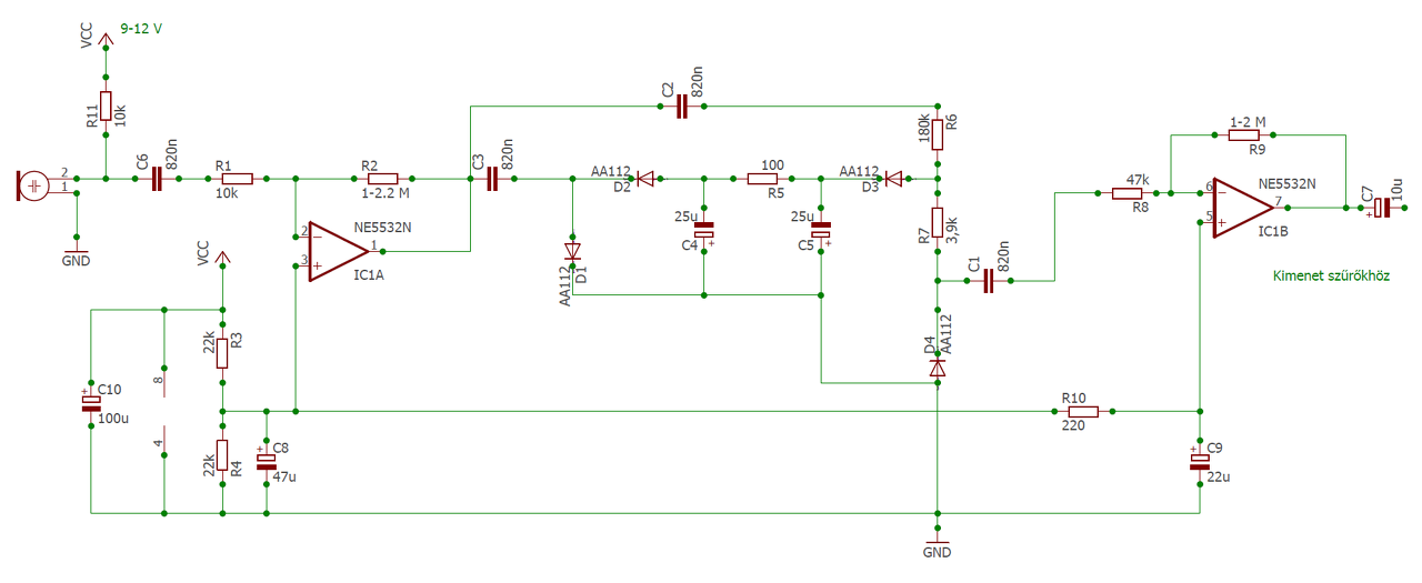A didódás AGC-t kb.: 150-300 erősítésű fokozat után kell elhelyezni ami az elektret mikrofon 1-10mV jelét felerősíti.