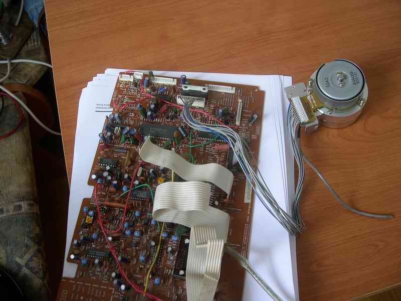 Elindult a fej,a fejcsatlakozó utolsó érintkezőjének kellett testet adni meg az ic 2 lábának 2-5 voltot.Egy baj van az ic nagyon melegszik raknom kell rá egy nagy h.bordát,a motor 0,4 ampert vesz fel.De a lényeg hogy megy.Kaptam egy fisher videot is annak is sikerült a fejét beinditani.ta 7736-os ic van a fejen , a csati 1 lába fehér vezeték -test a következő kettő pozitiv és már forog is!