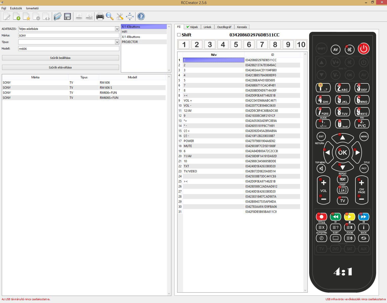 Köszi, hogy megnézted. A link amit tegnap találtam visszafejtette részben. Ezekből a távirányítókból táraztam be, sok minden benne van az adatbázisában, én is tudom bővíteni (meglevőről), de másik adatbázisból nem tudok bevinni.