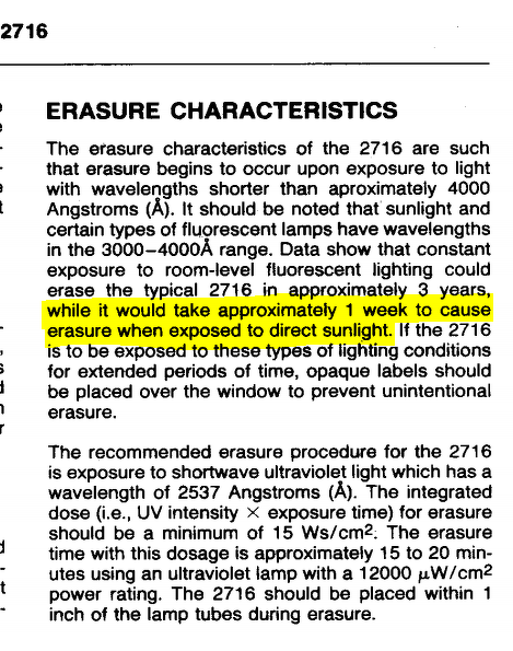 Itt feltettem egy Intel adatlapot. Részletesen le van írva benne, hogy milyen hullámhosszú, milyen dózisú sugárzás törli a kvarcablakos EPROM tartalmát. Ez a mostani definíció szerint körülbelül az UV-C tartományba esik. A műkörmös, barnító stb. kütyükről kevés adatot találtam.