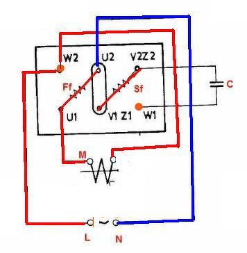Egy imi IMI FZ 664 R7a5 egyfázisú villanymotor a mellékelt kép szerint, bal forgásirányra van kötve, de hol balra, hol jobbra indul el.