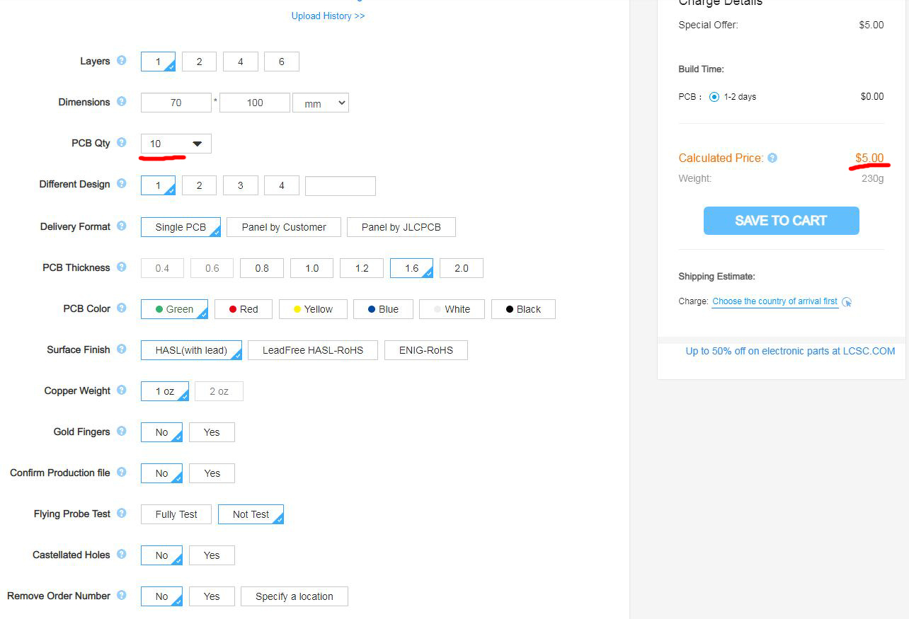 Nézegettem mi a különbség a két cég árai közt , a jlcpcb sokkal jobb árat ad a 10*10 méret fölött. Most éppen 17*5cm est kellene gyártatom .