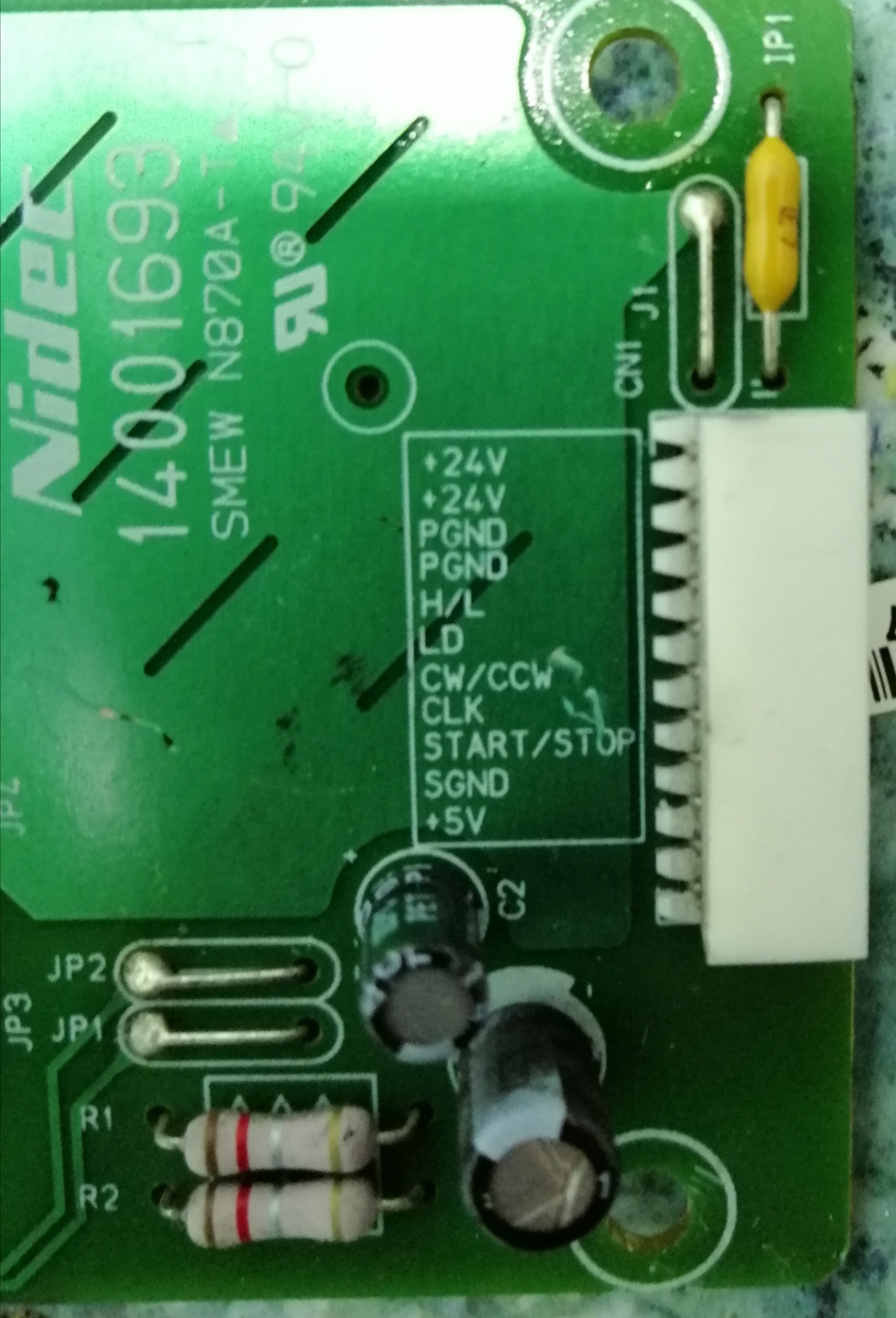 Szia, én úgy csinálnám, hogy a PGND-t és az S-Gnd-t összekötném, ezekhez képest megadnám neki a tápot a +24V-ot és a +5V-ot a jelölt helyeken, majd a start-stop lábat egy 10kiloohmos ellenálláson keresztül testre, vagy a +5V-ra kötném. Ha nem indul el, akkor tovább kell gondolkodni. Lehet, kell neki majd pár kHz-es, 5V-os órajel a CLK lábon. Vélhetőleg az fogja meghatározni a fordulatszámot. Mi a nagyobb IC típusa?