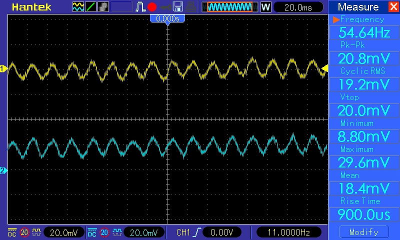 Több példányban elkészítettem, nincs sem 50, sem 100Hz zaj a kimenetén. Anti RIAA val érdemes lenne még mérned, jól megmutatja az átvitelét. Négyszöges, 50Hz és 10kHz mérés sokat elárulna a beállításáról. Csatolásban láthatod, ha az 50Hz tetőeséses, vagy a 10kHz túllövéses, nem ok a korrekciós lánc, munkapont beállítás.