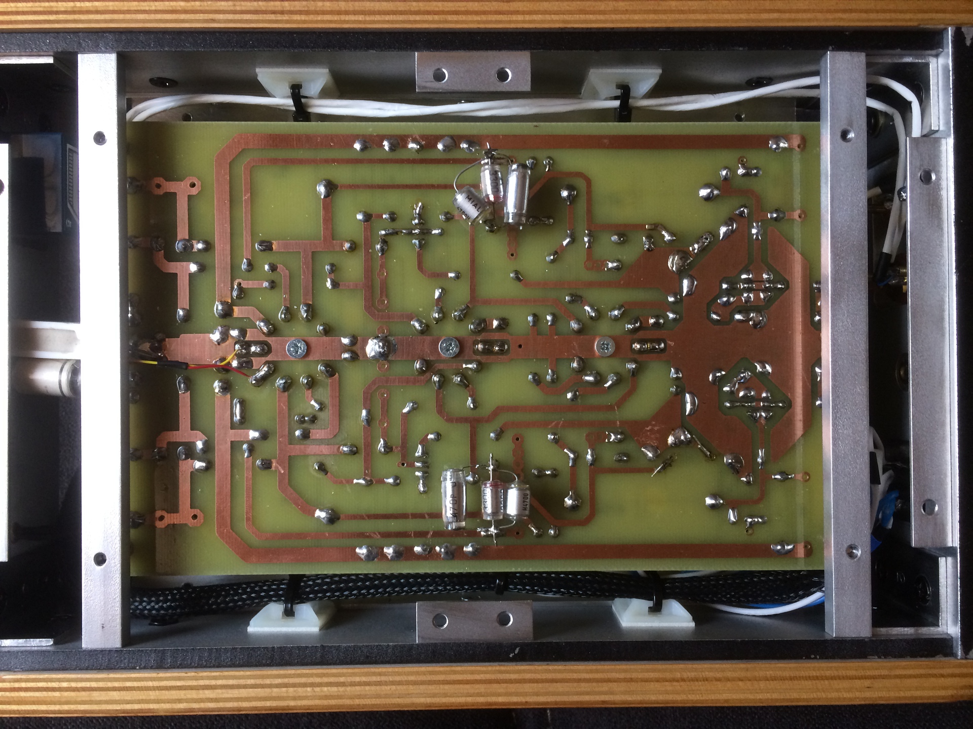 Ha jól látom, akkor az árnyékolás duplán van bekötve. A jobb és bal oldalé is be van kötve, a nyákon és onnan megy a kimenetekre.. Ha csak az egyik oldalt kötöd az erősítőre akkor is búg? Nekem úgy szokott jó lenni, hogy a kimenetnél összekötöm a RCA két Földjét és egy egyeres vezetékkel kötöm a nyákra.