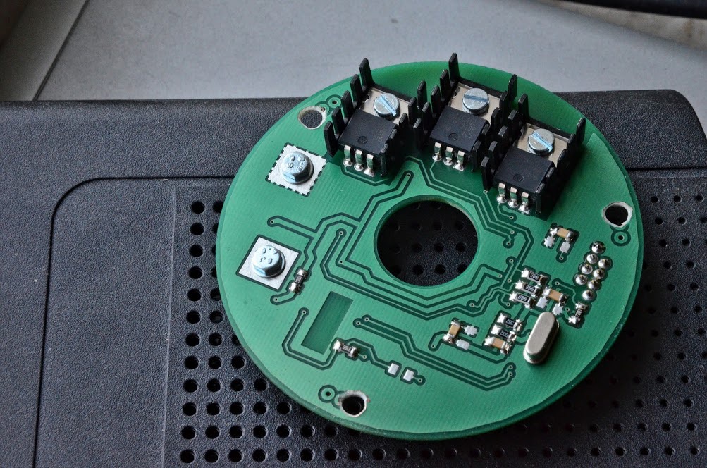 Azt, hogy tranzisztor van a végfokban IGBT helyett. Igen, korábban a nyákon a huzalozással is gond volt. Most arra odafigyeltem, hogy el legyen egymástól szigetelve a kisáramú és a nagyáramú GND, bízom benne, hogy így működni fog. Elég sűrűre és felületszereltre terveztem a nyákot.