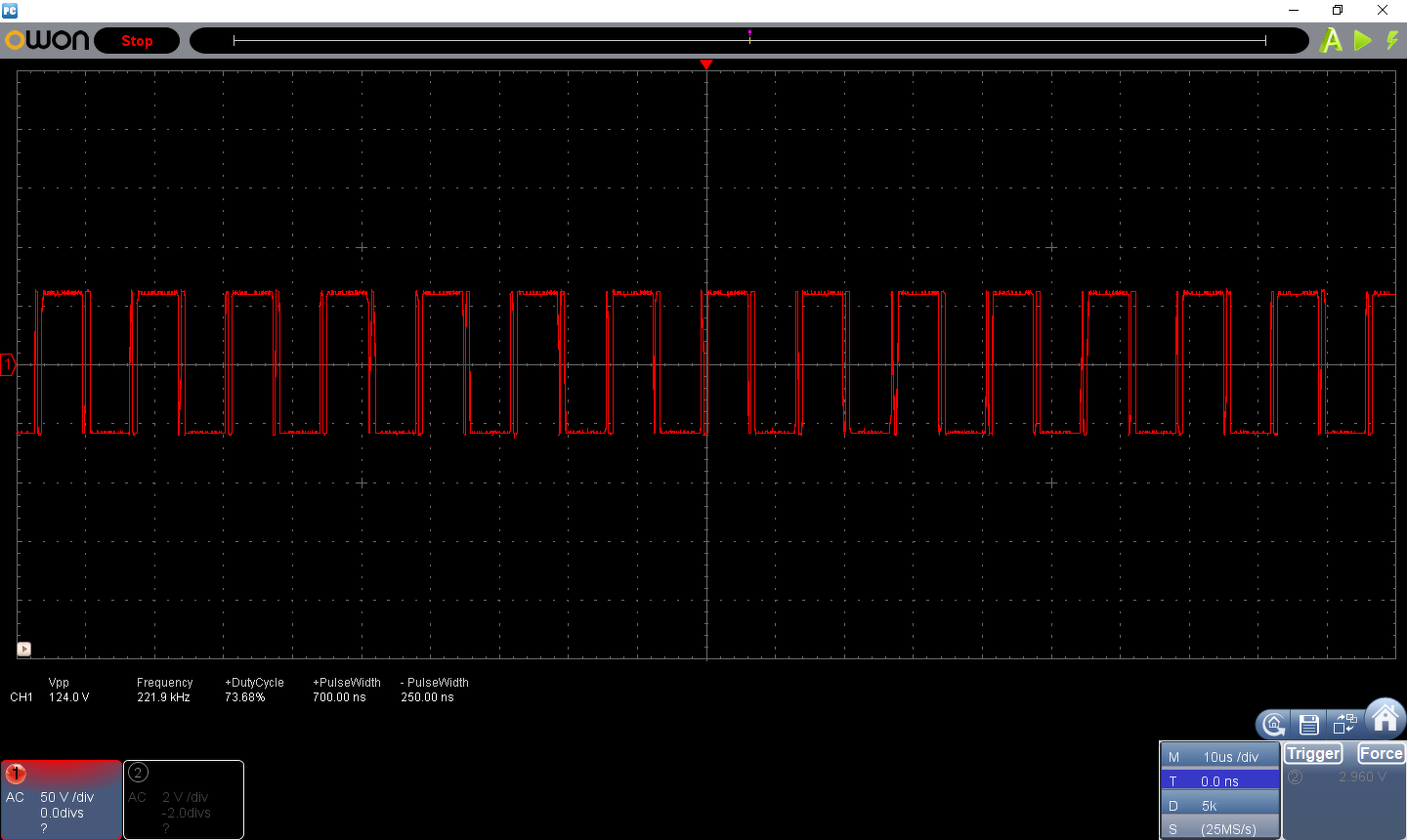 Értem, köszi! 10u/63V 10°C volt eddig ebben a pozícióban, a táp működött vele, ha találok 1u-sat kicserélem... Eddig nem tudtam megmérni a primer áramot normálisan, csak az is mosfet vezérlő lábait tudtam mérni, amik így néztem ki: