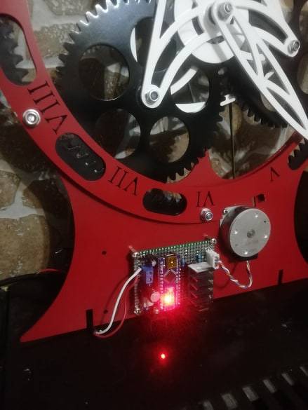 Na jó, ha már benne vagyok, akkor még egy óra. Ez nem most készült kb. fél éve már működik szépen. Természetesen ezt is lézerrel vágtam ki. Az anyag vastagsága a fogaskerekeknek 3mm-es lemez a többi alkatrész az 1,5 és 2mm. Itt is egy Arduino Nano-t használtam és egy léptető motort. Az elektronikáról és a motorról a fotó miatt levettem a burkolatot. Amúgy a burkolat egy szálra húzott Ko 1mm-es lemezből készült