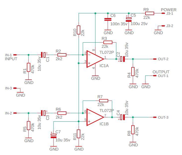 Hello! Valami más gond lehet, vagy nem a rajz alapján készült a dolog. a 47k/1µF -3dB-es pontja 3.4Hz. Kimeneten meg nincs frekvencia függő tag. Tápszűrés meg nem ártana.