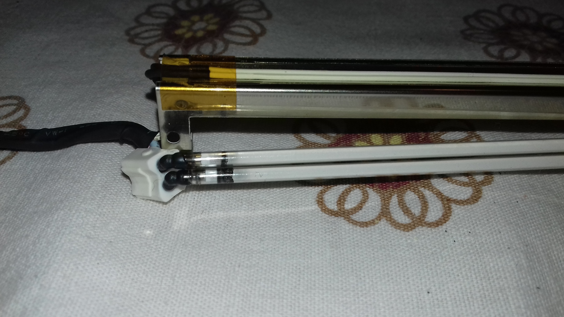 B verzió, kidobod az összes csövet, az inverterrel együtt, a belső 12V ra teszel két led csíkot azt beteszed a csövek tartósínjébe. Hátrány nem lesz fényerő szabályzás, a monitor háttérvilágítása folyamatosan menni fog készenlétben is. ( sűrű ledes keskeny csíkot válassz. az befér). Hátrány még, látszani fog sötét képernyőn az összes led egy picit. ( de nem zavaró).