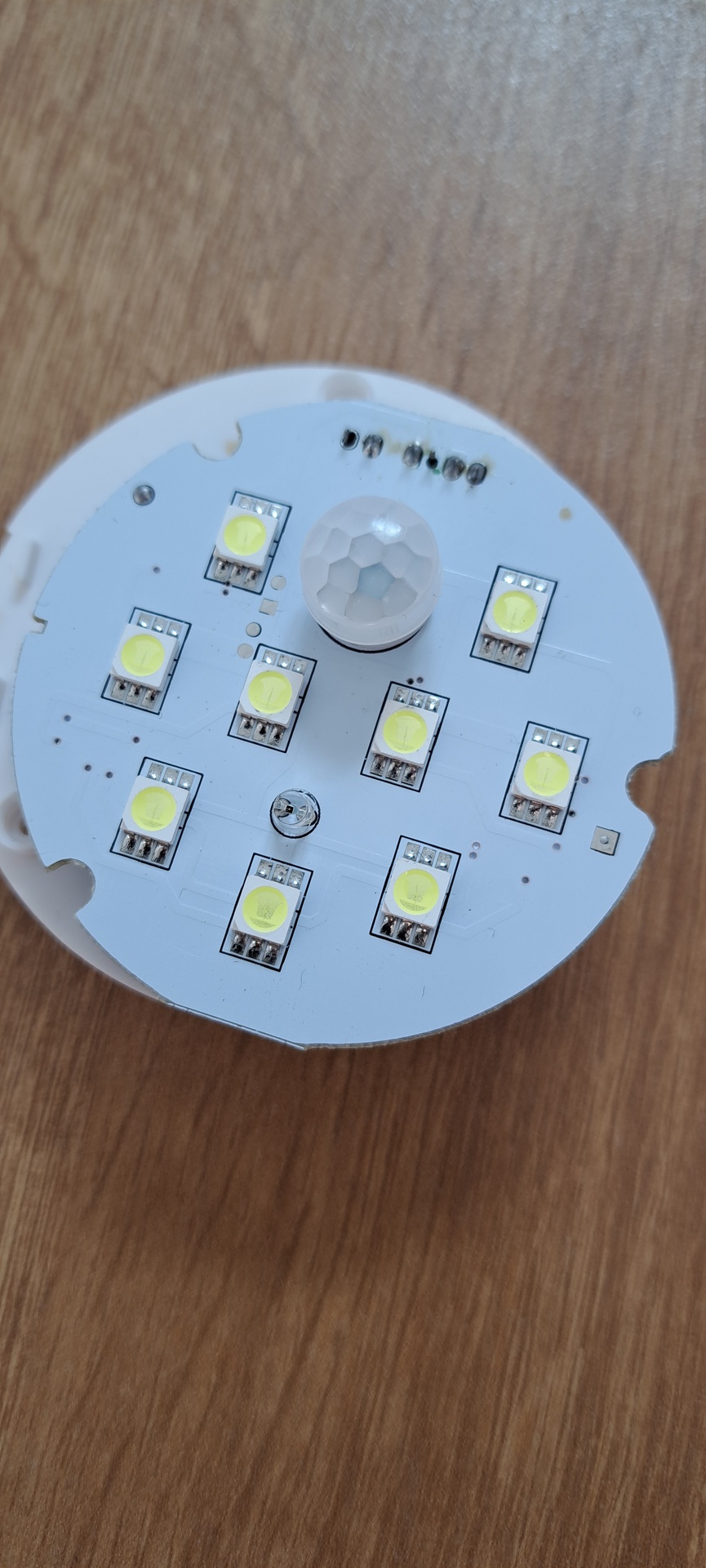 A PIR szenzornál való összekötés így haszontalan. A Q1 CE zárással a panel fix működésre bírható. Ezen kis rendet kell rakni, a PIR lábai hosszan voltak hagyva, közben ezekből is összeért legalább kettő. Az elemtartó megolvadt, kijár az érintkező, a készülék pedig fémházas. A stab felé menő soros dióda zárlatos, de az most minket nem zavar, a stab IC-vel már nem találkoztam.