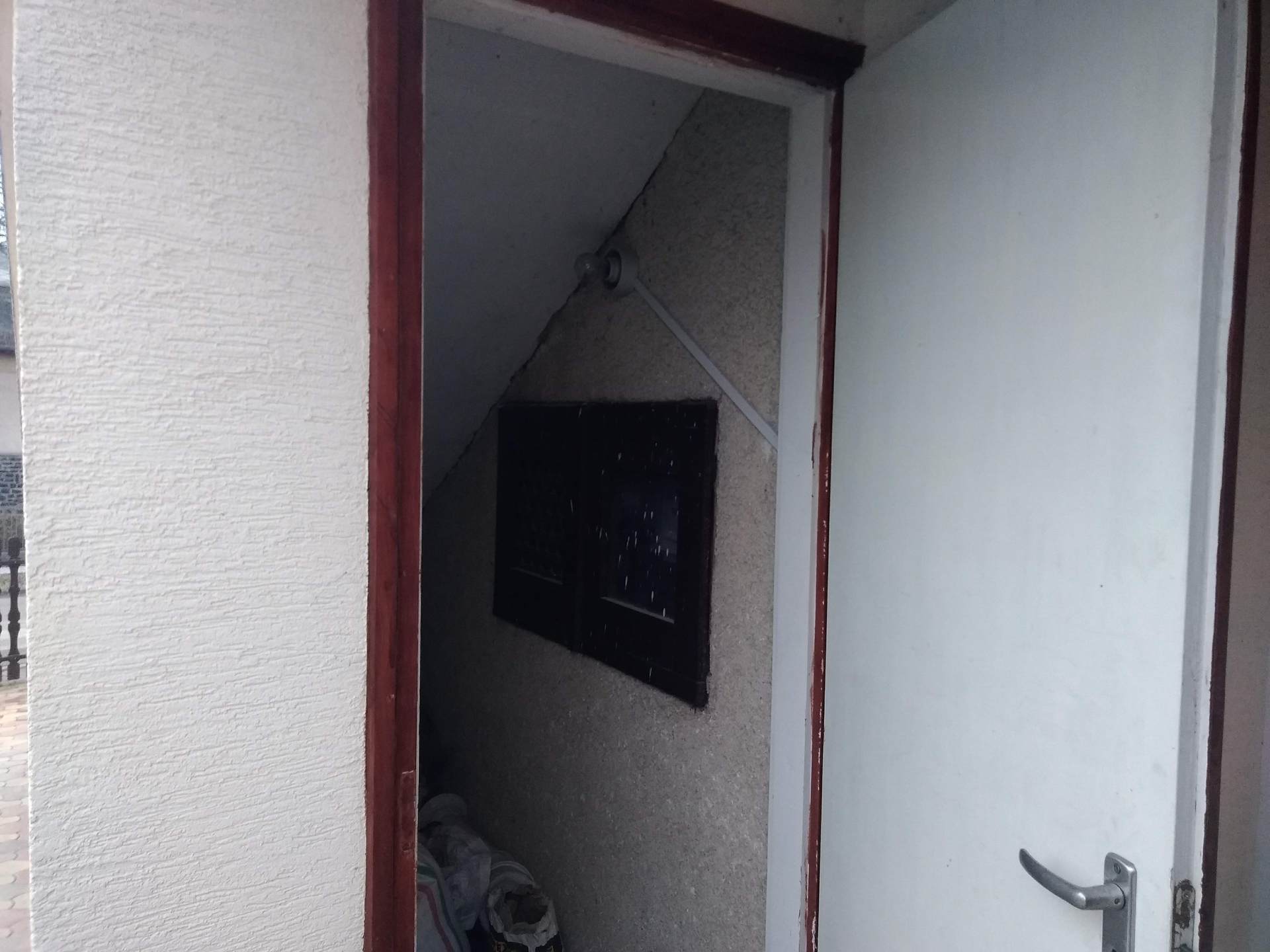 Az inverter fentre a bejárati ajtó mellé kerülne fölülre a kismegszakító mellé. Akkumulátor nem lesz hozzá.