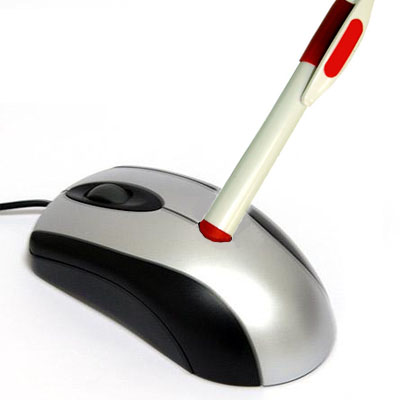 Magát az egeret kellene elvéknyítani, valahogy, hogy olyan legyen mint egy toll, s alul legyen a lézerdióda(vagy led). Mondjuk, elfűrészelgetni a benne lévő panelt, ahol az alkatrészek engedik, majd újra összekötözni a darabokat, betenni egy csőbe, s alul a led...