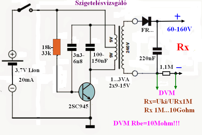 A multiméterrel a teljes és az 1MΩ-on eső feszt kell megmérni, a kettő hányadosából pedig megkapod az értéket amit a számológépről olvashatsz le közvetlenül MΩ-ban. A képen van egy mérés is, mellette a gyári szigetelésvizsgálóval mér érték. Ha kell még róla infó írok.
