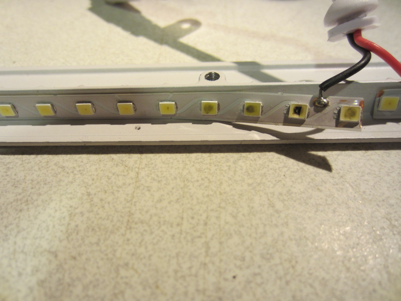 Igen, több is kiégett,a szalag másik részén is van néhány hibás, legalább 8-10 darabot kellene cserélni , cseredarab van egy egész tekercs.