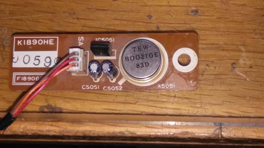 Egy video magnó tápegysége közelében volt beépítve. 5 lába van. +5V, Gnd , Gnd, kimenet és üres. Van még egy a nagy panelon Az BOO17GE típusú. Úgy gondolom valami oszcillátor lehet.