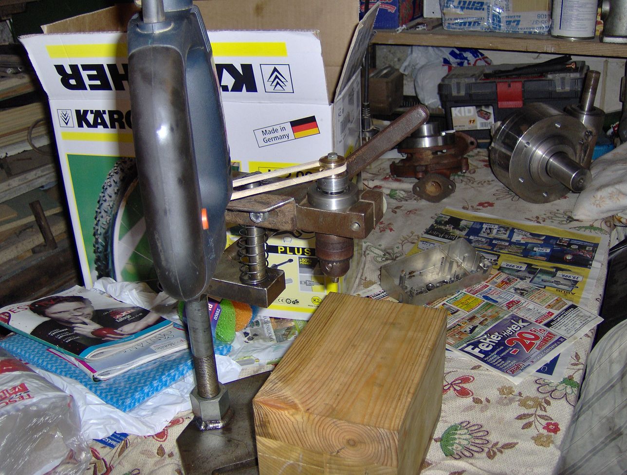 Az állvány kb 15-20 éve készült tehát még jó stabil és tuti nem borul fel. A "fúróasztalt" a szomszéd asztalos készítette nekem, én is szoktam neki segíteni sok mindent. Elég jó környék ez Nincs olyan hónap amikor ne jönne velemi új "lom" anyám szerint