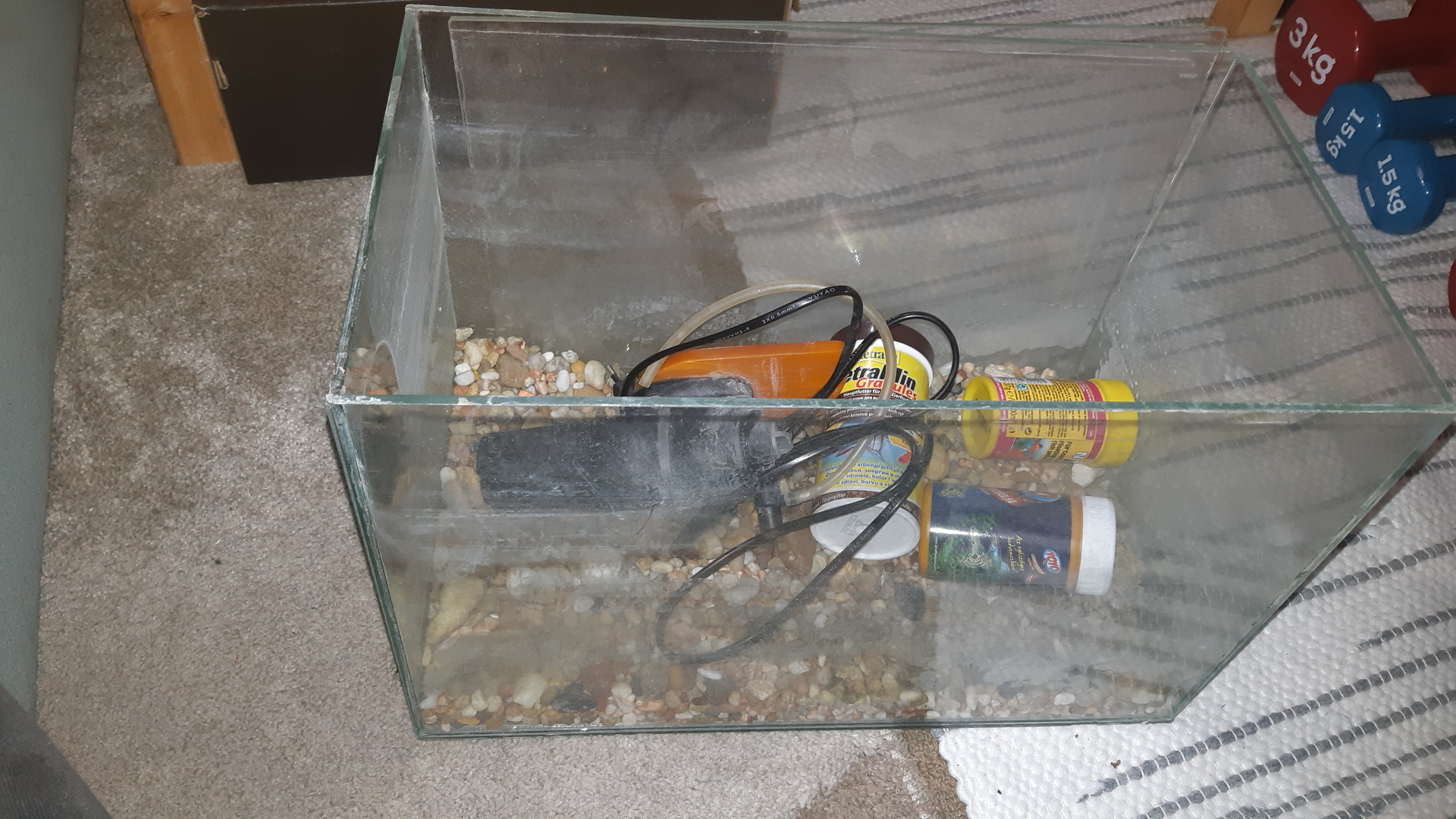 15. kerből elvihető kis akvárium. Valamennyi kaja maradt még, ill. hogy elektronika is legyen a belső szűrőt adom hozzá.