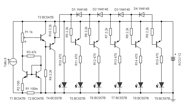 Egy led-es ampermérőt építenék, van valakinek ilyen kapcsolása ? Aksitöltőbe tenném, az első led mindig világítana a többi amperenként. Spec. Ic-t nem rendelgetnék, tehát fellelhető alkatrészekből építeném meg (dióda tranzisztor).