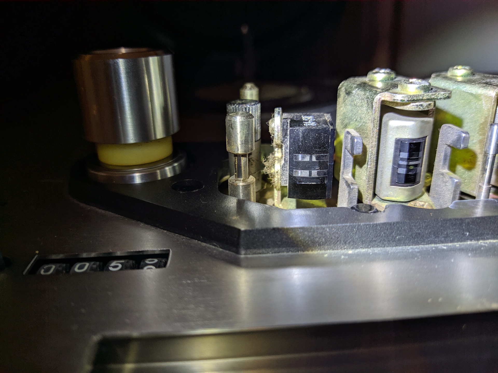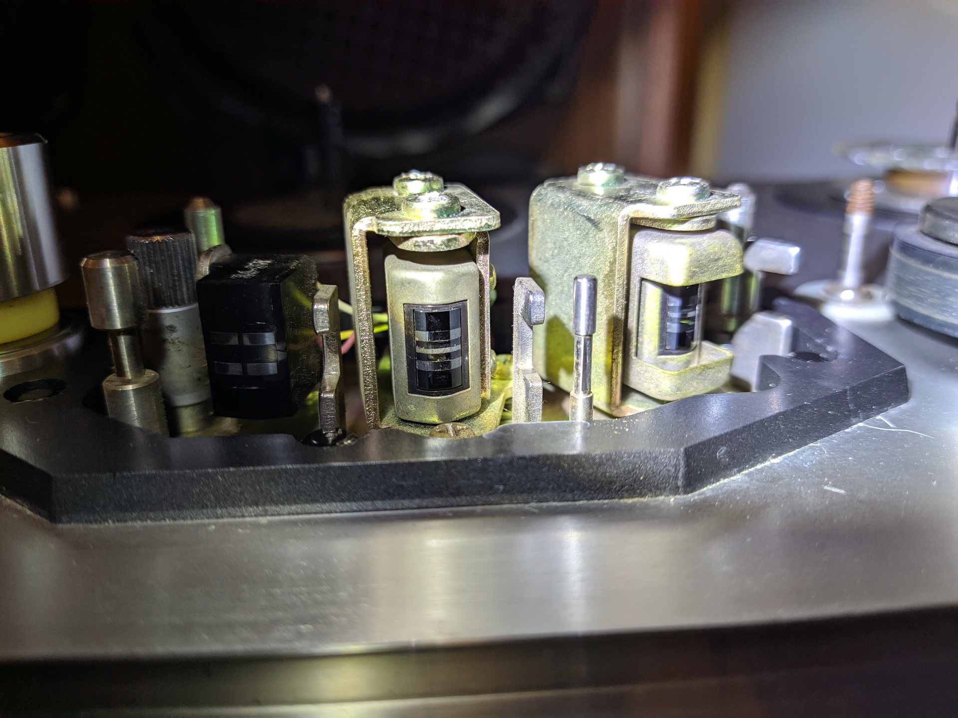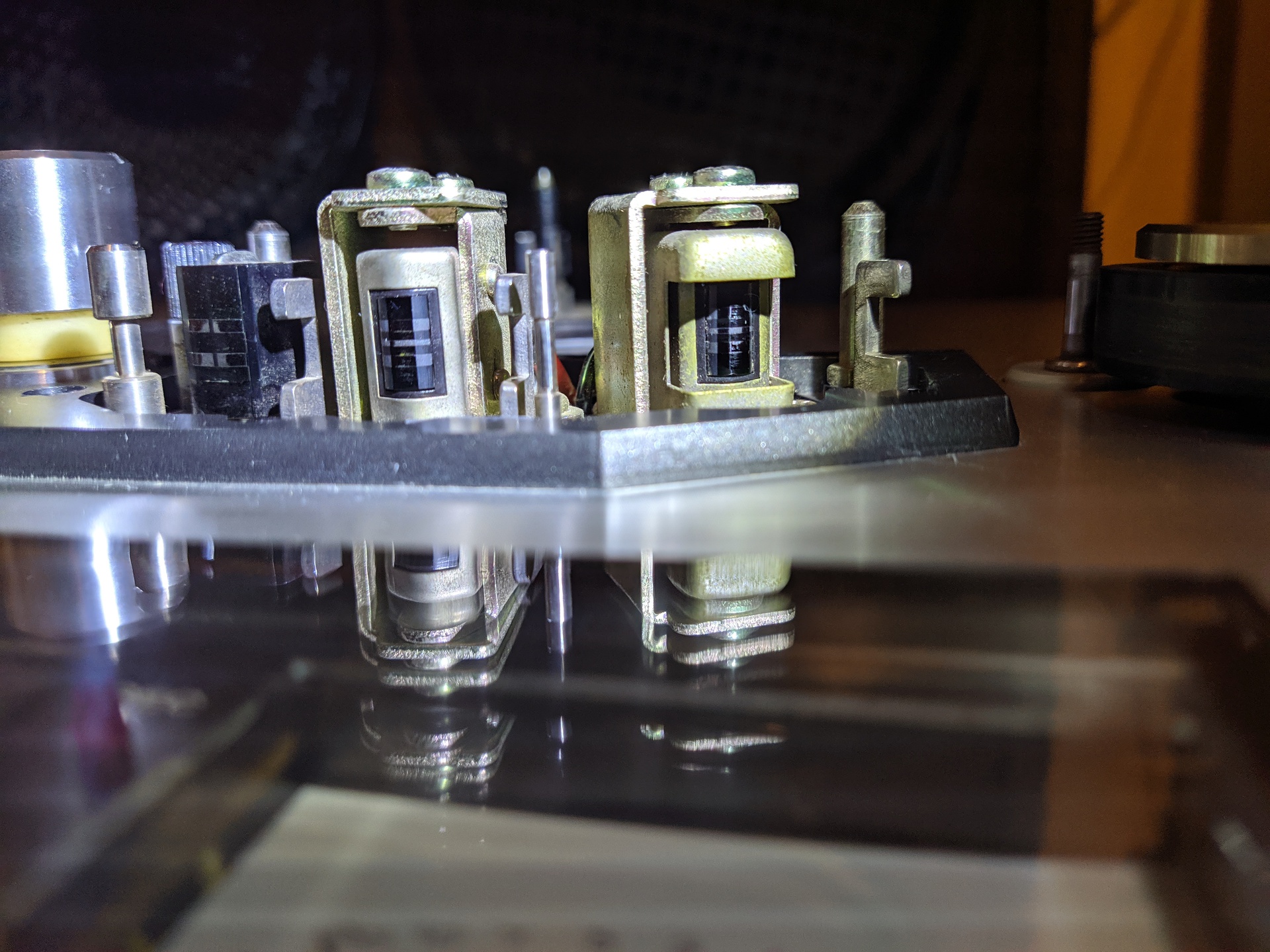 A lejátszófej kuka sajnos. A képeken jól látszik, hogy jelentős mértékben kitöredezett a felülete. Sajnos a 150 ezer üzemóra csak az Akai SRT-F szalaggal 9,53 cm/s sebességgel és erősen elméletben igaz(MARKETING). A gyakorlat azt mutatja, ha nem olyan tökéletesen polírozott szalagot használunk, mint az SRT-F, pláne polírozatlan stúdiószalagot, akkor az szabályosan lesmirglizi a fejeket. Erről anno írtak a HiFi Magazinban is a Mechlabor mérnökei.